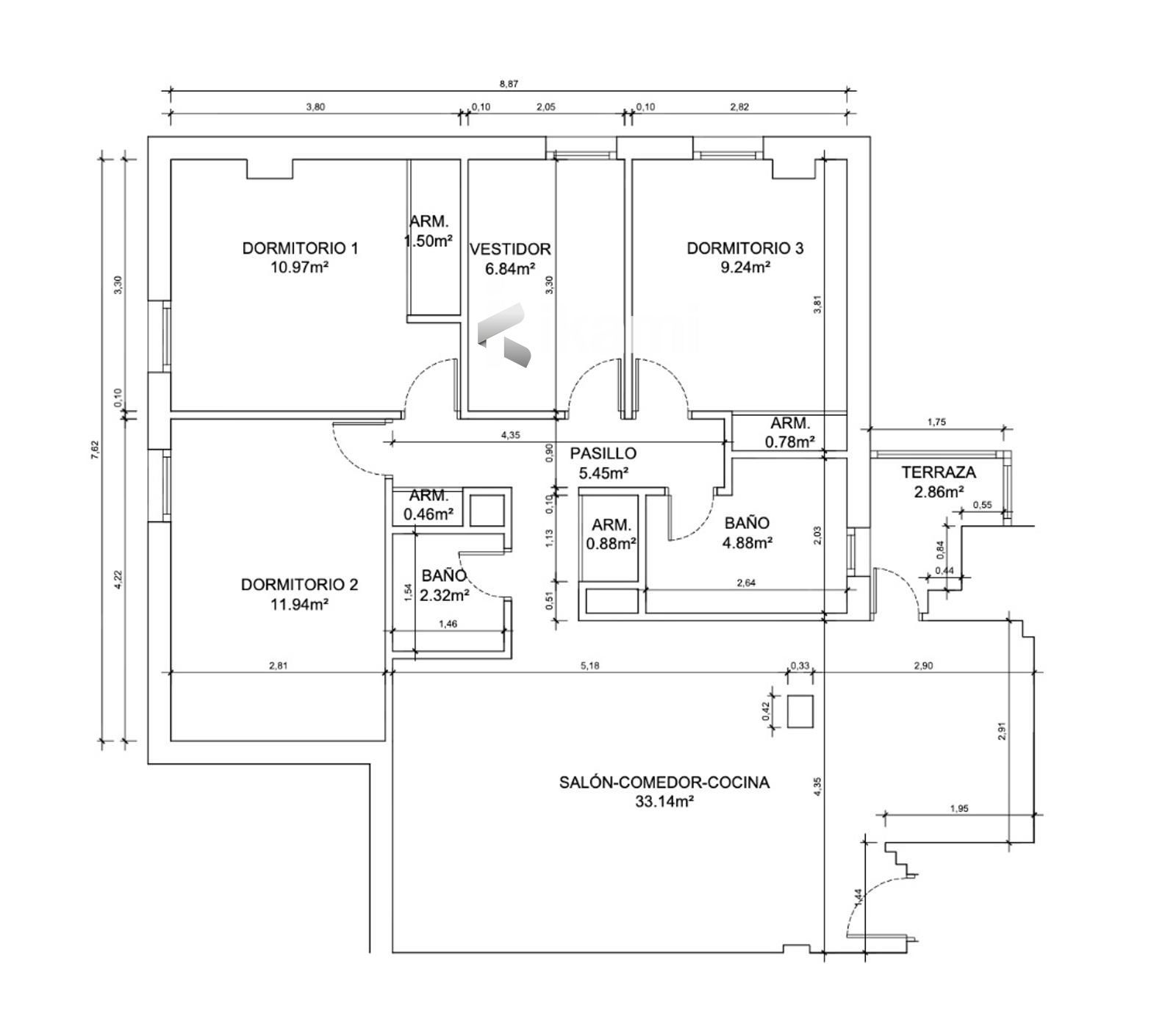 Calidades y equipamiento: Ventanas de aluminio con acristalamiento Climalit, que garantizan aislamiento térmico y acústico; Puertas interiores de madera, en excelente estado de conservación; Suelos de tarima flotante en toda la vivienda, aportando calidez y elegancia; Cocina reformada a diseño, con encimera de marmol, placa y horno industrial y alacena a medida a juego con el mobiliario; Isla central con espacio de trabajo y almacenaje; Espacio auxiliar de almacenaje adicional en la cocina; Iluminación LED integrada en el techo, configurable en diferentes tonos y colores.